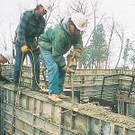 You should also consolidate each lift in a wall as you place it. Very flowable concrete can be consolidated by rodding it with a steel rod; stiff concrete is better consolidated with a vibrator. But if you have a high-slump mix, over-vibrating can create problems: It causes the gravel and sand to segregate out from the cement, and increases the pressure on the forms, which may cause you to pop a pin on a snap-tie, causing the wall to “pillow” out. One popped pin is more of an aesthetic problem than a structural problem, but too much pressure on the forms could cause a blow-out.