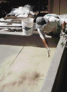 Another way to color concrete is to add pigment after it’s placed. This is done by heavily dusting the surface with a dry-shake color hardener after the crete is floated and the bleed water has disappeared. The moisture in the slab activates the hardener, which is incorporated into the surface by floating, troweling, or stamping with textured mats. The color typically goes about 1/8 inch into the slab.