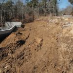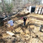To protect the wetland, we installed a silt fence along the limit of work line. This left us with little space for stockpiling the spoils. In all, we removed nearly 200 yards of clay soil from the site. For backfilling, we trucked in about 150 yards of clean sand.
