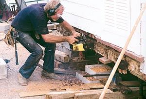 My company specializes in restoring turn-of-the-century and older homes in the Galveston Bay area of Texas. Period restoration may conjure up the image of an old man in a leather apron, spectacles, and visor, painstakingly refinishing gold striping on a fireplace pilaster. Since most stereotypes have a basis in fact, I won’t try to debunk this one, but I will say that a whole lot must happen before this fellow arrives on site. Many of the structures we work on have been neglected for years in a very unforgiving climate. On this end of the Gulf Coast, we have very damp, cool winters and hot, dry summers punctuated by torrential rain showers and occasional hurricanes or tropical storms. Humidity hovers around 90% at night, and by midday it drops to around 50%. Intense sun and salty air also come into play. Soil is also a big variable: It ranges from fairly stable sand at water’s edge to a hard clay silt just a few feet inland. We have a heavy black humus known as gumbo, which is very unstable: It shrinks and heaves, turning from a soupy mess when saturated to a rock-hard mass when baked dry. Building movement on this type of ground is a given, so structural repairs must always be addressed before other work can begin. Most of the houses I work on were built before ready-mix concrete was available. Many are supported on a grid of short brick piers spanned by 6×6 or 8×8 sills. In many cases, however, the sills were set directly on the ground. Even though they are made of bald cypress — a naturally decay-resistant wood — or creosoted yellow pine, after 50 or 60 years these timbers have rotted or been eaten by termites to the point of nonexistence.