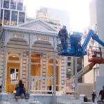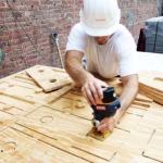 The design process began at the computer, using CAD/CAM software. A precise, 1-to-6 scale model was then laser-cut to test-fit all components. Once the model assembly checked out, full-size parts were produced on a CNC router, cut from 3/4-inch B/C plywood. The pieces remained captive in the parent sheet for shipping. At the build site, assemblers freed them with a hand router and fit them together in numbered sequence.