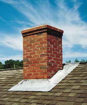 Figure 1. Newly replaced stepped flashing won’t stop the leaks in a failed chimney but will remain in place under the pan as a secondary barrier, to prevent wind-driven water penetration. |