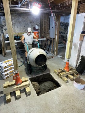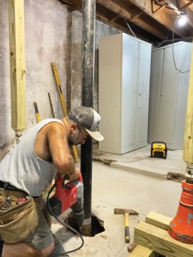 Other contractors had looked at the job but declined to take it on; I’d done similar work before (see “Shoring a Sagging Floor,” Mar/12), so I knew what to expect. Still, this was one of my most challenging basement projects, with a concrete floor consisting of two slabs poured at separate times, one on top of the other, over a subbase of broken-up ledge. The bases of the four steel columns were bearing on the stone substrate and buried beneath the two slabs, so the concrete needed to be broken up just to remove the embedded columns.
