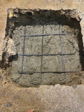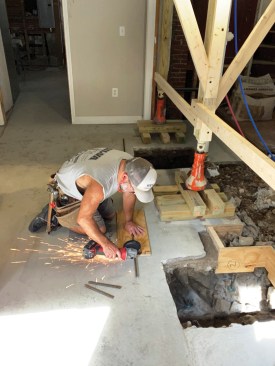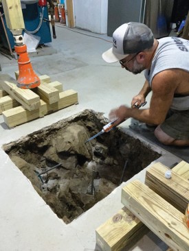 With the column out of the way, the author then enlarged the opening in the slab for the new footings. Here the broken ledge underneath the slab is clearly visible.