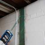 Structural strapping is made from several different materials. The type we’re using on the job shown in this article is a woven grid of carbon fiber and Kevlar, which is bonded to the foundation wall with a two-part epoxy.