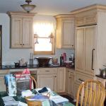 The original home was built with double-wythe structural brick – two brick walls mortared together with an occasional brick turned 90 degrees to tie the courses together. A later addition – the ell that formed the inside corner – had been stick-framed and clad with brick veneer. We worked with the client’s architect to design structural steel beams that could be assembled in place to pick up the weight of the brick walls and the second-floor and roof loads. The plan for the double-wythe section called for two 9-inch C-channels – one on each side of the wall – bolted back-to-back. Steel angles welded along the bottom edge of each channel would be let into kerfs cut in the mortar joints, thus picking up the weight of the wall above. That way we would be able to install the steel supports before disturbing much of the existing brick, eliminating worries about the second-story walls coming down as we opened up the kitchen. The brick-veneer wall would have a single steel channel against the brick and an LVL under the framing.