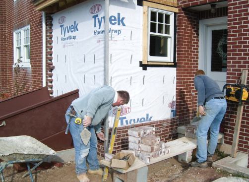 The big challenge when working with old masonry – whether brick or stone – is making sure the walls stay put, especially when the job requires making a large opening. Old stone or brick exteriors often depend on the surrounding earth, the interior framed walls, and the rafters to hold them in place, so if you disturb the surrounding support, you may weaken the masonry to the point of collapse. This is no hypothetical worry: I know of a contractor in the area who had a two-story stone wall come down during a remodeling project.