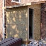 We waited until we had framed and sheathed the addition before removing any more brick. We started with a sledge, but after a few bricks were dislodged the rest popped out quite easily – reinforcing the importance of getting the steel beams in place first.