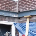 We first erected temporary support walls inside – from the second-story ceiling down to the ground in the basement – to pick up as much of the floor and roof load as possible. We then used a masonry saw and grinder to cut kerfs in the mortar joints to receive the steel angles. The veneer wall required only one 8-foot-long channel on the exterior face. The double-wythe wall of the original house needed two 14-foot-long channels, one of which we had to feed through a hole we made in the veneer wall. In fact, the only bricks we had to disturb during this process were the ones removed for the pass-through and several more inside where we needed vertical channels for the support posts. Because we had transferred the house loads to the temporary supports, we didn’t have any problems.
