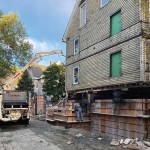 We engaged a local house lifter, Chris Nastasi of CN Building Movers, to do the lift and move. He would need to set up four cribbing towers, on top of which he would place a series of steel beams to support the house. One of the decisions that I had to make was whether to place the cribbing towers on top of the basement slab or take out the sections of the slab where the towers would sit and excavate to the footing depth grade. Either approach was fine, and I ultimately settled on the former. Since we were maintaining the slab elevation, we needed to drop the grade by only 16 inches (10-inch footing + 2-inch foam + 4-inch slab), and I didn’t think that would be problematic. If we had been dropping the slab, I would have probably advocated for the other approach to avoid having cribbing towers sitting on pyramids of dirt after the demo/excavation was completed. However, this approach saved us a step and allowed the site work contractor to do their work in (mostly) one mobilization.