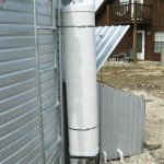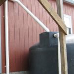 that flows off a roof after a dry spell carries a heavy load of dissolved solids from dirt and bird droppings. To keep this contaminated water out of the tank, we divert it to the ground. (Not until the roof has been washed clean does the system begin saving the water it collects.) This requires a device called a first-flush diverter, which is installed between the gutters and tank. It consists of a plumbing tee with a large capped pipe, called a diversion chamber, at the bottom. When dirty water flowing from the roof has filled the chamber, a ball float seals it off from the tee and allows the clean water that comes after to flow directly to the tank. A slow-drip flow-control valve in the bottom of the diversion chamber slowly releases the diverted water onto the ground, leaving the system ready for the next rainfall. The flow-control valve comes with a set of interchangeable bushings that can provide different drip rates; typically, the diverter will empty out within a day after a rain event. We get our flush diverters from Rain Harvesting, which offers kits for both large and small diverters, as well as a diverter designed for use underground. Diverter sizing. In a properly designed system, the volume of water diverted is proportional to the roof area — it’s up to the installer to fabricate a diversion chamber of adequate capacity. But this isn’t a particularly exact science. I’ve seen a number of academic studies on the subject, each of which came up with a different diversion rate. In potable systems, we rely on a rule of thumb that calls for diverting between .05 and 0.1 gallon per square foot of roof area, or 100 to 200 gallons for a 2,000-square-foot house.