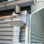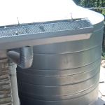 The water that comes off the roof receives an initial filtering to keep things like leaves, acorns, and the occasional dead bird from getting into the system. This can be done either by screening the tops of the gutters or by installing a rain head in the downspout. We like the Leaf Eater rain head, which we get from an Australian company called Rain Harvesting (rainharvesting.com/content/default.asp). The Rain Eater incorporates a sloped screen that ejects debris into the yard; a finer screen below prevents mosquitoes and other insects from entering the tank.