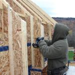 In our first issue this month, Coastal Connection visited a job site in rural Maine to follow the action as Jesper Kruse and the crew of Maine Passive House framed a two-pitch cathedral roof system with wood I-joists (see: “Framing a Two-Pitch I-Joist Roof,” October 13, 2014). Last week, we went back to the site to see the crew attach an I-joist buildout to the building’s walls, forming a wall cavity for super-insulation that matches up with the I-joist roof (see Slideshow left).