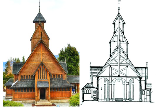 Stave construction seems to be a uniquely Viking technology that evolved from methods the forest-and-fjord dwellers devised for building ships. Essentially, it’s a post-and-beam structure formed from all-heart Norway spruce and Scots pine that the builders prepared by lopping off the branches of living trees in early spring so the trees would bleed sap and concentrate resins in the heartwood. Once frost-hardened, the trees were felled in early winter, yielding a pitch-infused, extra-rot-resistant wood. Walls were formed from thick vertical boards that were “fish-joined” (an arrow-and-groove-type edge joint) to each other, and the ends dovetailed into horizontal sills that rested high and dry on gravel beds and granite footings.