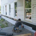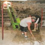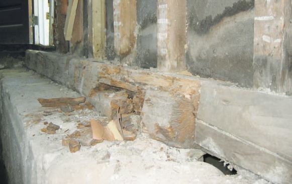 The timber-frame building had three oak bents with 8-by-8-inch vertical posts, 8-by-12-inch horizontal beams, and 3-3/4-by-3-3/4-inch studs roughly 16 inches on-center in the exterior walls. The floor framing was a mixed bag, especially the first-floor deck, which had a hodgepodge of 2×8 and 2×10 joists feeding into various girders that had been propped up over the years with wood posts. Also, the tops of the walls had bowed out from the weight of the roof and were as much as 2-1/2 inches out of plumb over 9 feet in some areas.