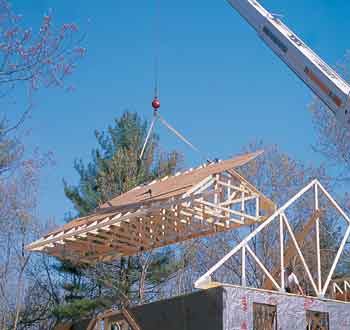 Several years ago, while discussing how to lift trusses for a hip roof, our crane operator suggested that I preassemble some of the components on the ground. I decided to give it a try, so I worked a little late that day, attaching the jack trusses to the girder trusses (see Figure 1). The lift went off without a hitch. On the next hip roof house I built, I went further with the preassembly and attached the hip trusses and corner jacks while the assembly was still on the ground. Even factoring in some extra time for head scratching, the method saved us time.