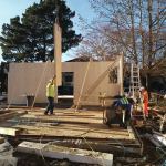 Determining which panels go where isn’t complicated: They’re keyed to the plans and labeled 1a, 1b, 1c, and so on. Ideally, the panels would be stacked in order and oriented by the supplier in the position they’d be used. But that didn’t happen here, so before work could begin, we needed to sort them using the crane, which ate up some time.