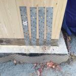 Like the foundation, the treated-wood sill plate must be perfect because of the fixed panel sizes. And of course bolts can’t protrude above the surface of the sill plate. All connections in a CLT project must be specified by a structural engineer; in this case the panels were fastened to the sill plate with vertical straps.