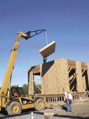 Handling. SIPs arrive at the site on one or more semitrailers. Small panels are light — a 4×8 6-inch panel, for example, weighs about 115 pounds.