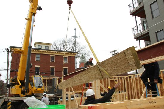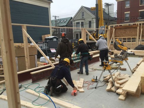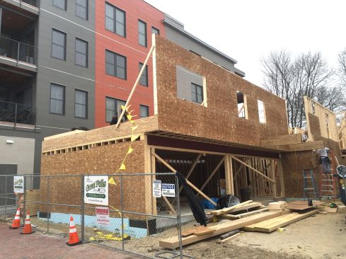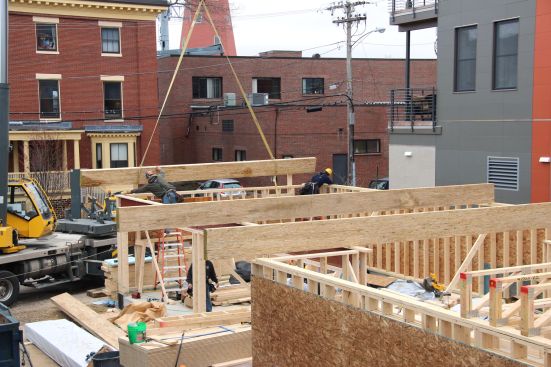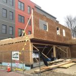 Portland, Maine, offers a good example. In the city’s trendy East End, teardown and infill projects are sprouting up on almost every block. The project shown here, in the city’s Munjoy Hill neighborhood, is a four-unit building squeezed into a tight lot between an older, existing wood-frame house and a brand-new four-story mixed-use condominium building.