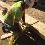 But Geyer’s immediate task was just to get his materials off the delivery truck and onto the site—a task made easier by having a large crew of framers on the job. Setting the steel I-beams, however, required more than muscle power: After bracing off the wall, Geyer called for a crane to lift his beams into place. The crew bolted 2×6 plates onto the underside of the beams before setting them, then marked and fastened an upper plate to the beams in place, allowing wood-to-wood connections between the steel beams and the walls below and floor framing above.