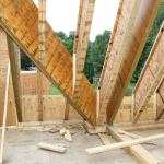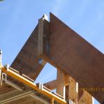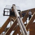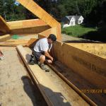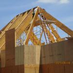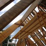 JLC and Coastal Connection have been following the job, and this week, we take a look at the framing of the steep roof system. The structure involves a huge LVL bearing ridge beam and LVL hips, supported by a site-built truss assembly. The rafters are 20-inch wood I-joists; cavities will be filled with dense-blown fiberglass insulation, then the roof will be topped with an additional layer of Roxul rockwool insulation, for a total R-value of R-120 or better. For a look at the framing in progress, see the slideshow.