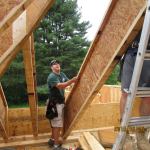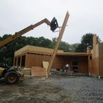 In the Boston suburb of Wayland, Mass., crews from Auburndale Builders are building the company’s first Passive House project. The building’s form is somewhat unusual for a Passive House — instead of sticking to a simple, boxy form to simplify the construction details and energy analysis, designer Donald Grose has drawn a dramatic, but traditional building with a cut-up footprint and a fourteen-pitch hipped roof.
