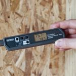Blowing air will work to a certain extent, but controlling humidity is the key to really drying down your framing. Remember that 100% humidity means that the air has reached its maximum capacity to hold water and no drying can occur no matter how much air you move. I also own an Extech Humidity/Temperature Pen (bottom photo, page 70), and anytime I’m drying a house and get an outside humidity reading above 60%, I shift into lock-down mode: I close all the windows and bring in a dehumidifier. Running fans in conjunction with a dehumidifier will bring down your moisture content in roughly a week, assuming it’s not too cold.