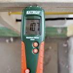 You might also want to take some readings on the sheathing if it’s been exposed to heavy rain. Also measure king studs, because they’ll take the longest to dry and shrink the most.