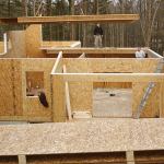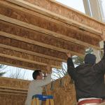When we get a set of plans to panelize, a designer here in our shop analyzes the floor loads to determine where point loads will need to be supported within panels, and where wall openings may need headers. If we’re planning to panelize the floors, the designer breaks up floor systems into 8-foot sections (the section width is limited by the length of the floor sheathing). The crew assembles the floor sections in our shop. On site, they use the crane to “fly” the pieces into place.