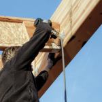 Eaves blocking. We cut eaves blocking from I-joist stock. Whenever possible, we like to install it as we go when setting the rafters, just like we do when setting trusses. We cut the blocks 1/16 to 1/8 inch short to prevent us from “growing” off layout.