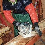 Super-steep bevel cuts. On the bastard valley, the jacks on the 8/12 side landed on the valley at an 8-degree angle. The only way we could cut this was to freehand with a chain saw, but the cuts came out perfectly.