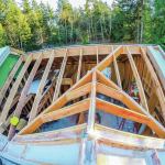 On most of the homes we build, we stick-frame the roof. Often these homes have vaulted ceilings in the master bedroom under two intersecting roofs. The tricky part of this kind of roof is maintaining a vaulted ceiling under the intersecting roofs with clean drywall lines beneath the valleys and intersecting ridge.