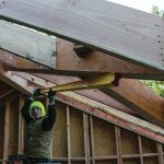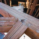 Depending on the design approved by the engineer, fastening the valleys and lower ridge can be a hassle. As mentioned, we used TimberLok screws to secure the valleys to the face of the main ridge and to column studs in the rake walls. At the intersection of the valleys and the minor ridge, we ran 5/8-inch threaded rod and used bearing plates to spread the load over 6-by blocks cut at 45 degrees.