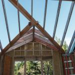The order we assemble this roof is: 1) main ridge, 2) supporting valley, 3) supported valley, 4) minor ridge, 5) infill jacks.