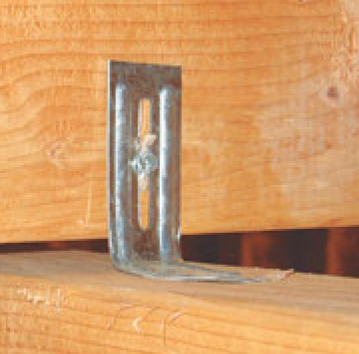 Sometimes cracks appear where partition walls meet trusses. This could be due to differential shrinkage or settling of framing members, improper drywall installation, or truss uplift. An effective way to allow for vertical movement at this location — while laterally supporting the wall — is to use slotted truss clips. These clips must be correctly installed, with the nail in the center of the slot (left), or they will restrict truss movement. A few of the common errors I see are nailing too high in the slot, driving the nails in the slot all the way home, and toenailing the truss to the partition (right).