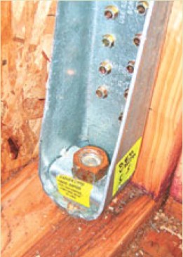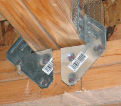 Unique and unexpected framing connections always seem to come up at just the wrong moment. While it may be tempting to save time and trouble by modifying a connector that is already on site, don’t do it. Bending can cause fractures, changes the geometry of the connector, and may reposition fasteners into weaker areas of the lumber. The side flange of the hanger supporting this glulam beam (left) was hammered flat, and someone cut this hurricane tie (right) in half to make it fit a double truss. Both pieces of hardware will have to be replaced, because no manufacturer will warrant or guarantee the performance of modified connectors unless they’re specifically engineered for field sloping or skewing.