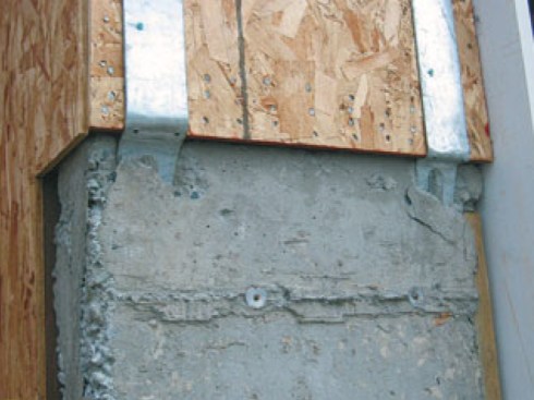 Another acceptable option is to use straplike mudsill anchors instead of anchor bolts. These anchors are cast into the foundation, field-bent around sills, and then fastened in place with nails (bottom right). Their low profile eliminates framing conflicts, and they have a lower installed cost than anchor bolts. In most cases they can be spaced about the same distance apart as 1/2- and 5/8-inch anchor bolts.