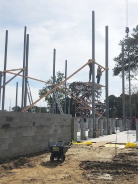 Knowing how critical it was to have all the steel placements work out with the framing, we brought our framer on-site shortly after footings were poured and the CMU work was just underway. Working together on the layout gave us confidence that our steel column locations were accurate.