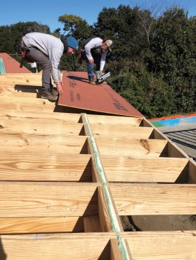 They also installed blocking in the rafter bays, then sealed the roof sheathing to the blocking with Contega sealant.