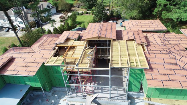 After the steel was packed out, the structure was framed and sheathed conventionally.
