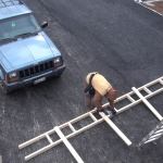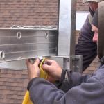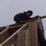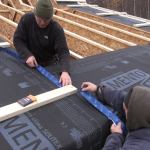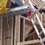Kruse was occupied with laying out the eave of the low-slope part of the addition’s roof. Taking into account the planned strapping and sheathing (not yet applied to the roof), as well as the wall strapping that will later be required for vertical board wall siding, required a little bit of head-scratching on the contractor’s part.
