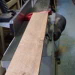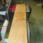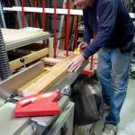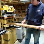 From the jointer, we run the boards through the first of two thickness planers that smooth and flatten the other face of the board. We make the initial passes on a large, powerful stationary Powermatic planer that hogs material off quickly and easily.