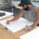 We filled the screw holes (9) with Bond&Fill (bondfill.com), a filler designed to work with all the available brands of PVC trim. We let it set up for about 15 minutes, then sanded it smooth, leaving the screw holes invisible.
