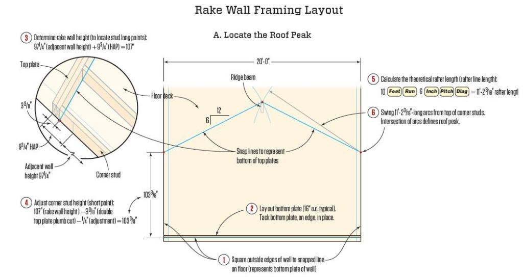 - What follows is our current method for framing any rake wall, including walls where the slopes differ or the slopes start at different heights.