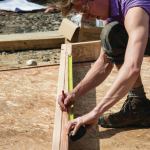 We try to frame as many walls as we can before lifting them because once the bracing is in place, it can make it difficult to work. We brace the wall plumb using our DeWalt DW0822 laser level, so that we don’t have to come back later and brace it again.