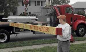 I had also placed two furniture dollies outside on the sidewalk, thinking we would have to drop the beam onto them and roll it up to the house. But when the boom operator opted to send the beam right through the front doorway instead, he got no argument from me.