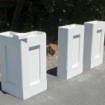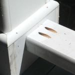Frame-and-panel pedestals. The pedestal frames are made from 3/4-inch cellular PVC trim boards, and the panels from 1/2-inch PVC sheet stock. For applications like this, I use Kreg pocket screws along with TrimTight cellular PVC cement (TrimGlue, 877/874-6458, trimtight.com). Using both pocket screws and glue helps ensure that the stock won’t move and open at the joints. The original base caps were made from 2-inch stock, which wasn’t locally available in PVC, so we glued up the caps from two layers of 5/4 material.