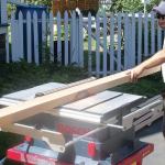 Built-up handrails. The existing handrails and balusters were fir, but we glued up the replacements from two layers of 5/4 red cedar, which is durable and machines nicely. I didn’t have the 50 or so clamps I would have needed to laminate the cedar boards in the usual way, so I improvised with wood screws. After drilling holes 4 inches apart along the edges of the boards, I coated them with glue and screwed them together. The next day, I removed the screws, ripped off the edges with the screw holes, ran the stock through a portable thickness planer, and routed the edges to match the profile of the original rails.