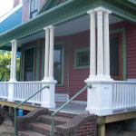 The homeowner wanted exact duplicates of the original column and handrails. We used wood for the handrail but assembled pedestals from rotproof cellular PVC. The columns are cast from a fiberglass-reinforced polymer.